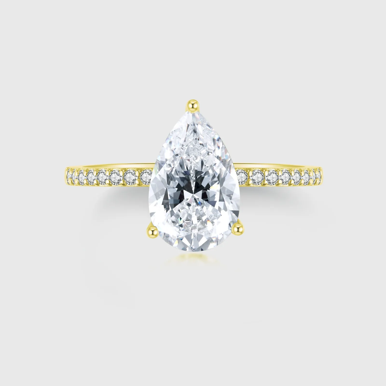 (J5838) Pear shaped Moissanite diamond three-prong ring